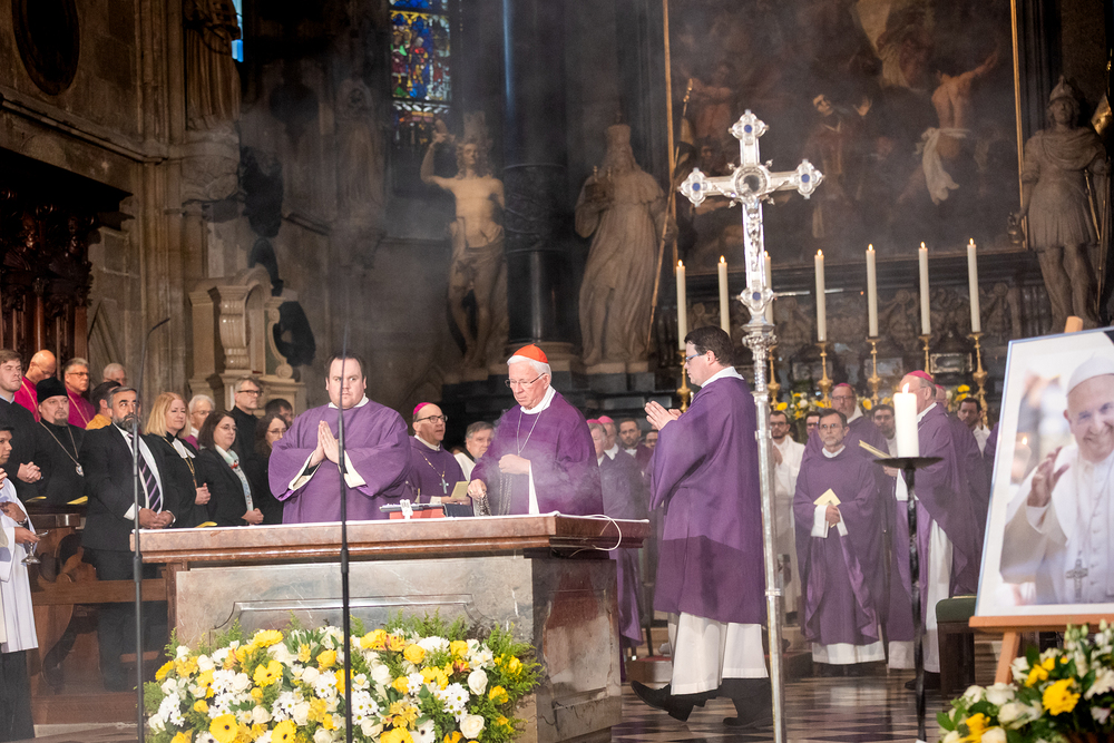Mit einem "Requiem für seine Heiligkeit Papst Franziskus" nahm Österreich am Montagabend offiziell Abschied vom Papst. Dem Gottesdienst stand der Vorsitzende der Österreichischen Bischofskonferenz, Erzbischof Franz Lackner vor. Mit ihm konzelebrierten die heimischen Bischöfe. Die Politik war an erster Stelle von Bundespräsident Alexander Van der Bellen und Bundeskanzler Christian Stocker vertreten. Zahlreiche Gläubige gaben dem Papst im vollen Dom ebenfalls die letzte Ehre